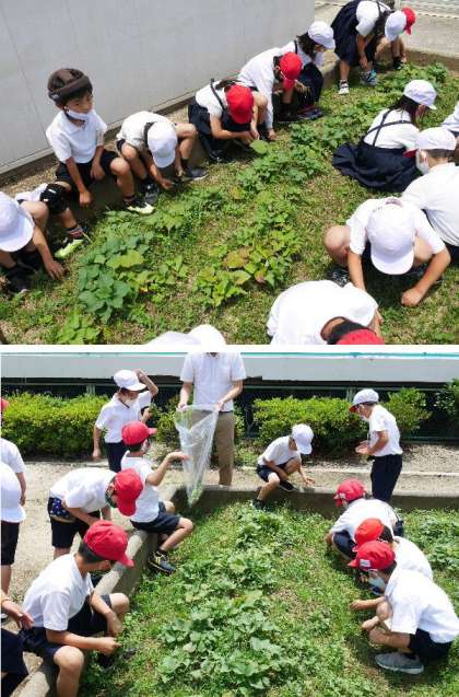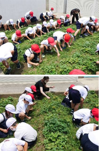 2年生のサツマイモ園が、第2グランドにあります。その雑草をぬきにいきました。秋には大きなサツマイモが収穫できるといいですね。