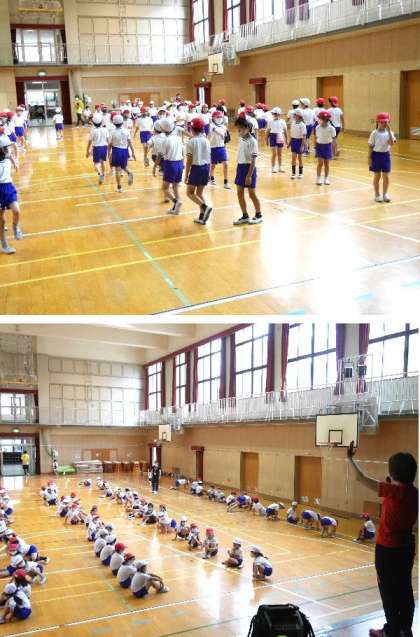来週から始まる水泳の授業で、声を出さないで、準備運動や、シャワーにかかるための音楽にあわせい行動します。