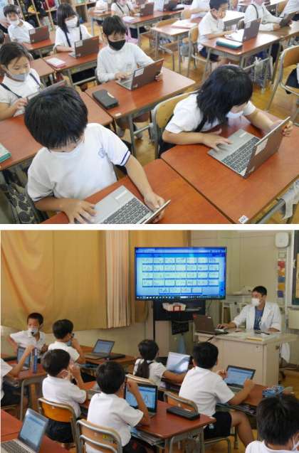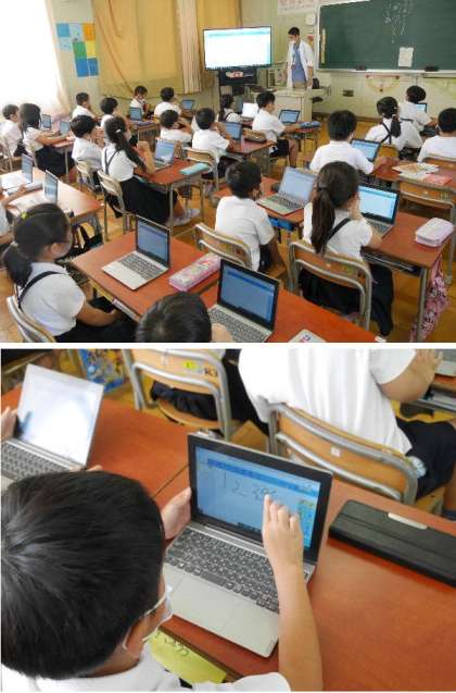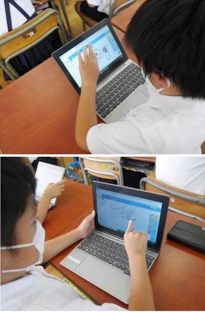 2年生が、パソコンで新しく追加されたスカイメニューの機能を使って練習しました。