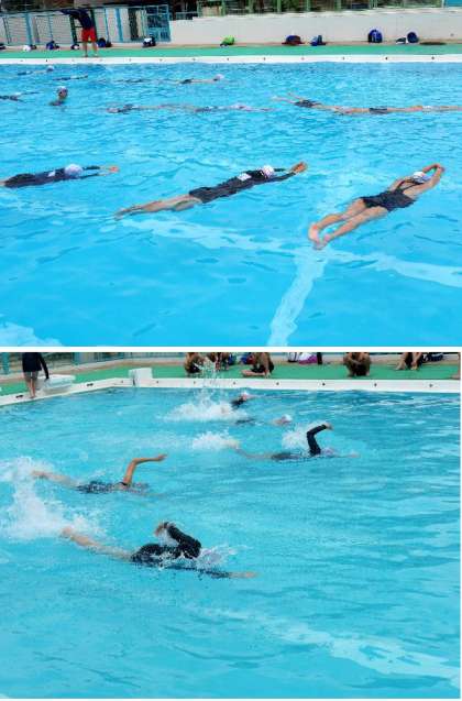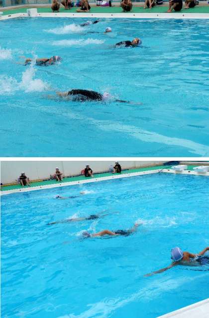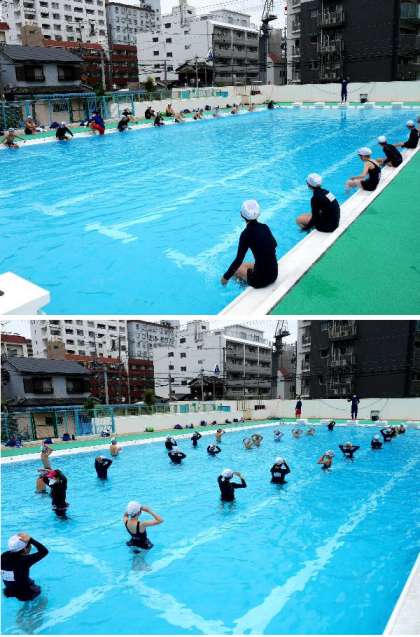 今日からプールでの水泳授業が始まりました。6年生は昨年もプールで泳いでいます。さっそく、どれだけ泳げるか測っています。さすがは6年生です。しっかり泳げていますね。