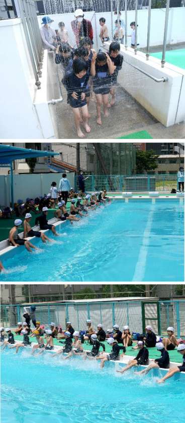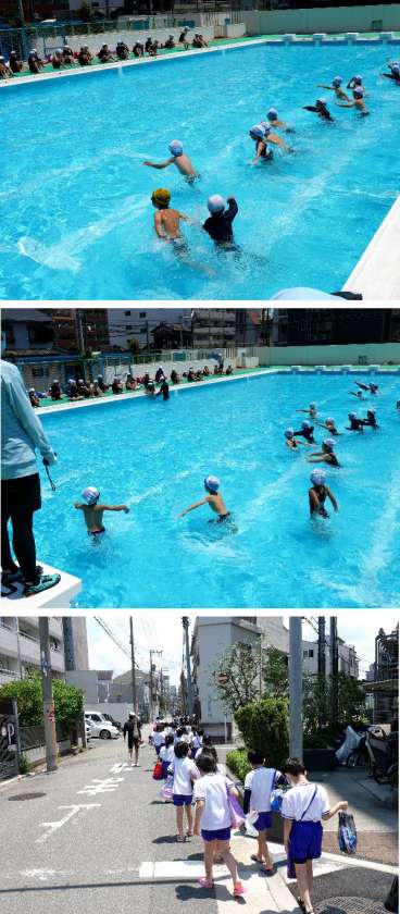 2年生は、昨年はプールの授業はできませんでしたので、今年、はじめて学校のプールに入りました。しっかりと先生り指示を聞いて、プールに入ってがんばっていましたね。まずは、水に慣れることからですね。プールの中を歩くところからです。