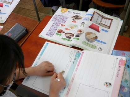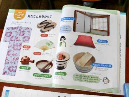3年生の道徳「ふろしき」です。守りたい日本の文化ということで、ふろしきのお話しです。その他にも、せんたく板や、しちりん、ゆかた、げたなどが紹介されています。