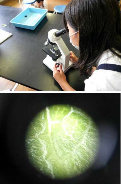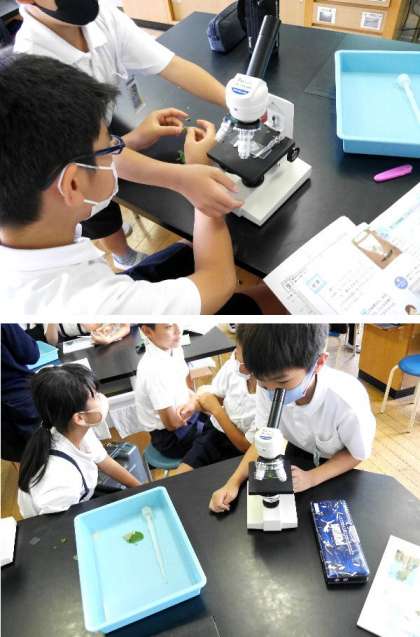 6年生の理科では、顕微鏡を使って、葉っぱの気こうを観察しました。葉の表面ってこんなふうになっているんだね。