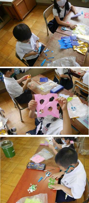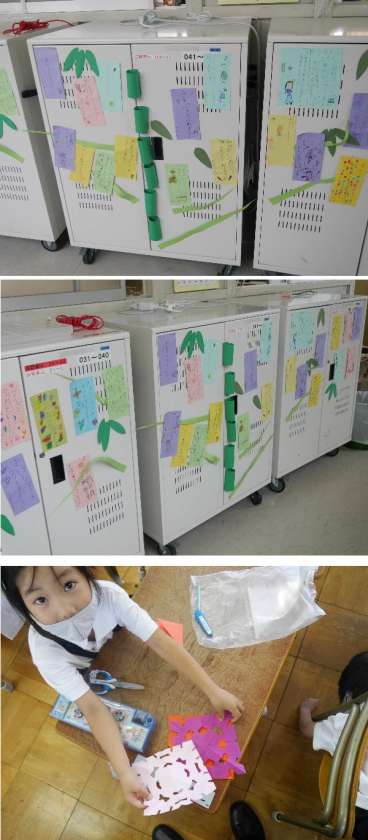 今日は七夕です。1年生は願いの短冊をはりだして、かざりつけもしました。
