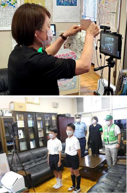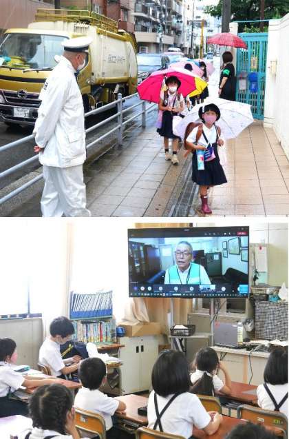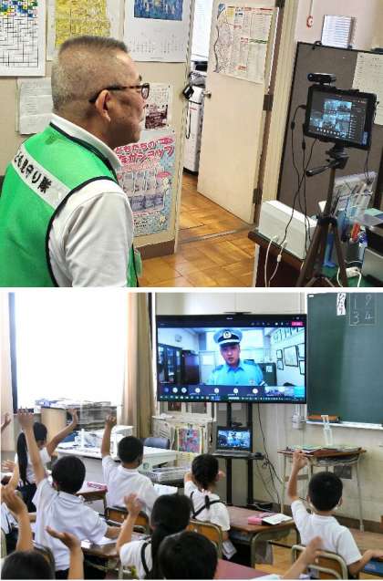 また、地域の防犯指導員「見守り隊」の連合町会長さんに来ていただき、オンラインでの児童朝会でご挨拶していただきました。日頃より本校児童の登下校時の見守りにご尽力いただき、本当にありがとうございます。