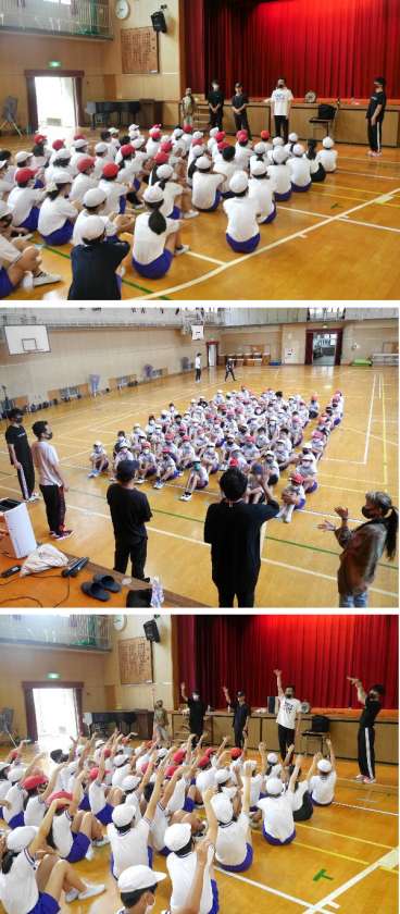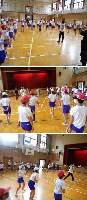 6年生の出前授業に、ブレイクダンスの授業をしてもらいました。講師先生方の得意とするダンスを見せていただき、子どもたちのテンションももりあがりました。基本的なダンスの動きを練習したあと、4つのチームに分かれて、それぞれのダンスを練習しました。