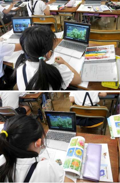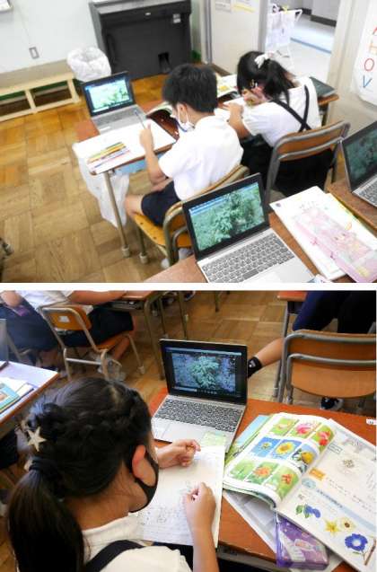3年生の理科では、タブレットだ草花を撮影して、教室でゆっくり観察日記を書いています。