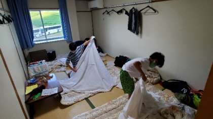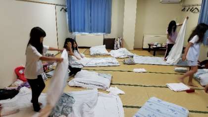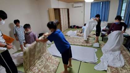 おはようございます。5年林間の3日目です。寝床をたたんでいます。