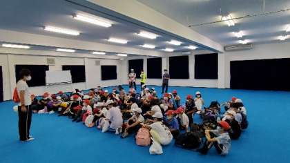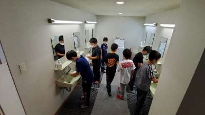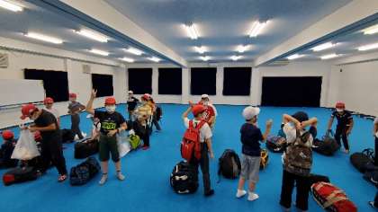 活動場所の清掃をして、帰校準備をして、多目的室に集合しました。これから、ジャガイモほりをします。