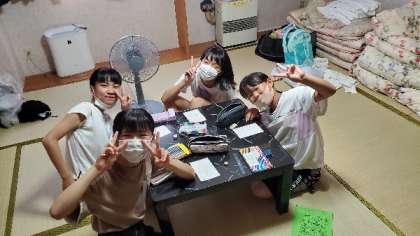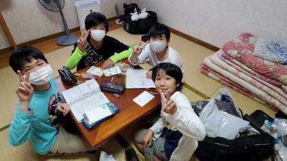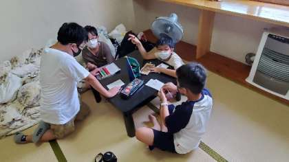 宿舎にかえって、入浴とハガキ書きをしています。時間があればカードゲームで楽しんでいます。