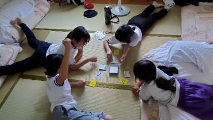 昼食まで部屋でゆっくりカードゲームで楽しんでいます。