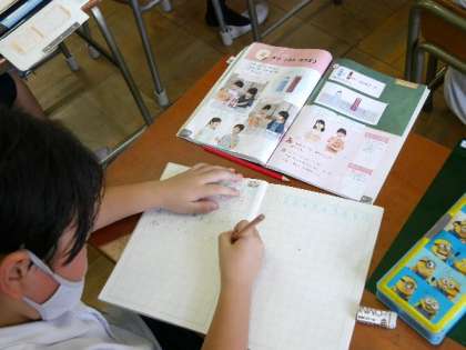 2年生の算数です。2つの水筒のどちらに多くの水が入るかな。どうやってしらべたらいいでしょうね。