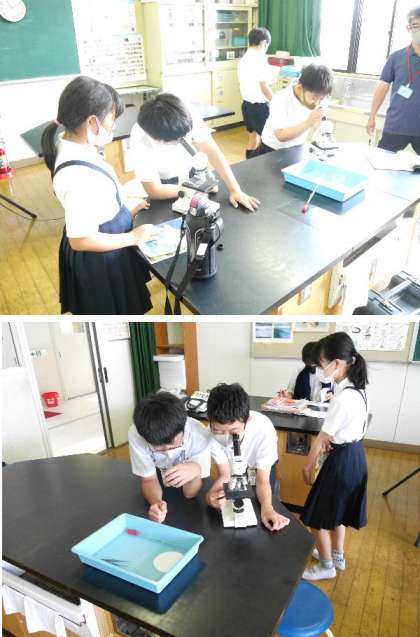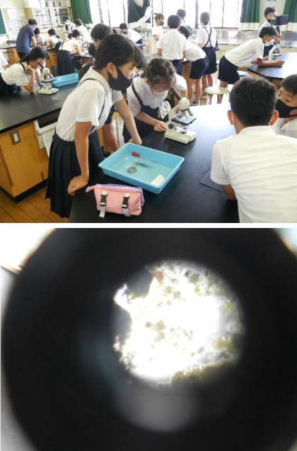 8月26日 6年理科!顕微鏡で水底の落ち葉を観察