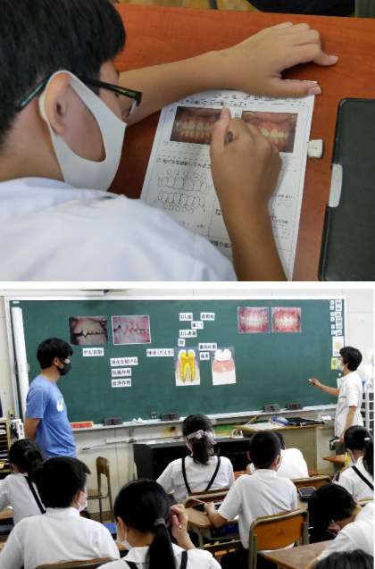 6年生では、歯科衛生士さんに来校いただき、歯と口の健康教室をおこなっていただきました。生涯にわたりとても大切な歯の健康について学習しました。