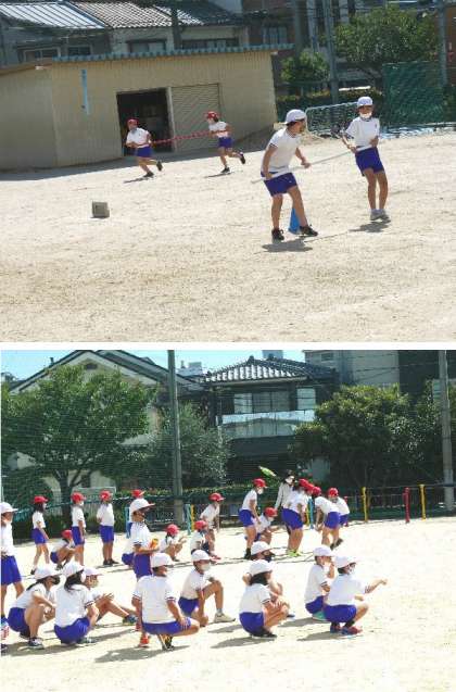 4年生が運動会にむけて、団体競技の練習をしていました。