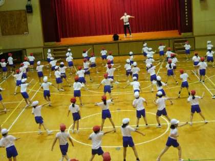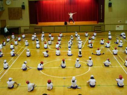 2年生が体育館で、運動会の演技の練習が始まりました。