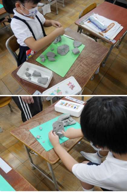 今日は、粘土でハローウィンにちなんだものを作りました。