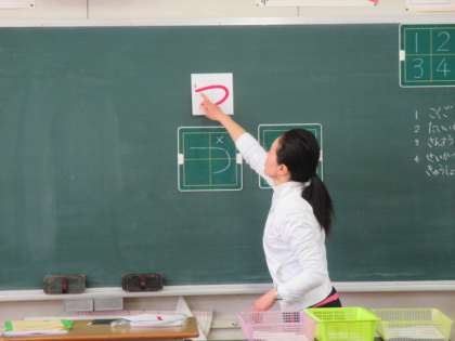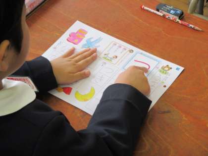 それを見て、子どもたちもいっしょうけんめい書いています。
