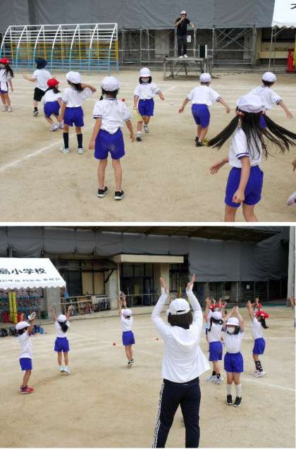 1年生の演技の練習では、細かな部分の動きの練習もがんばっています。
