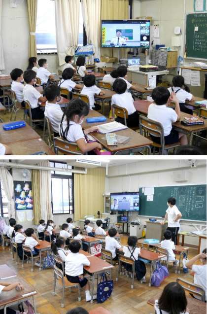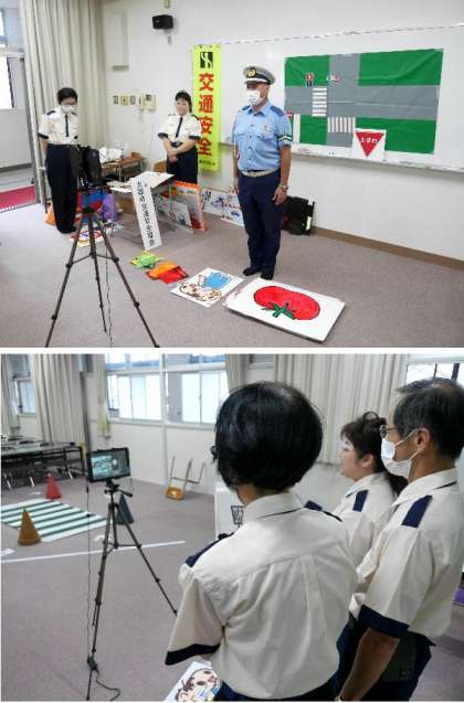 都島警察と交通安全協会の方々に来ていただき、オンラインで1年と2年生に、秋の交通安全についてのお話しをしていただきました。