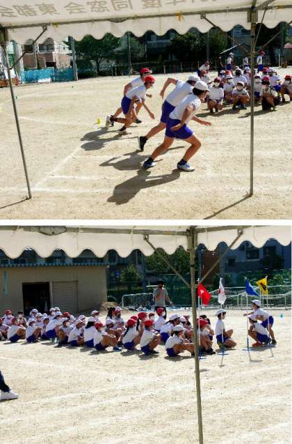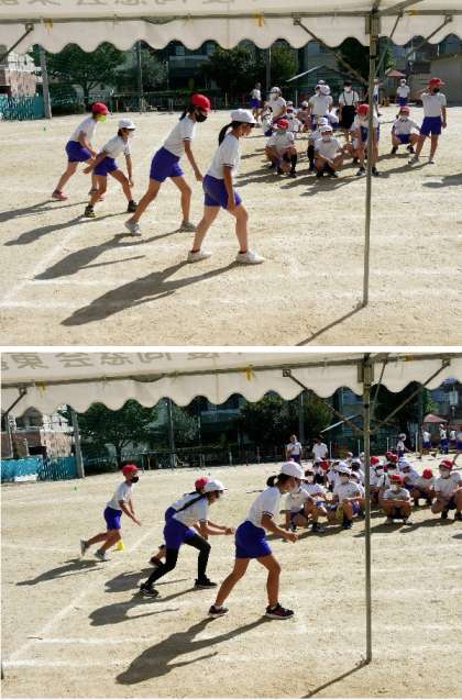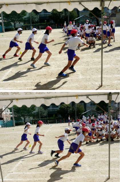 6年生の運動会では、対抗リレーを行います。入場から退場までの流れや位置を確認しています。