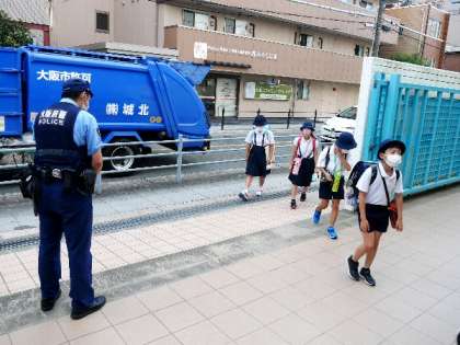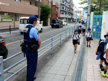 定期的に都島警察官の方が、登校時の見守りをしてくださっています。