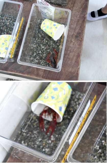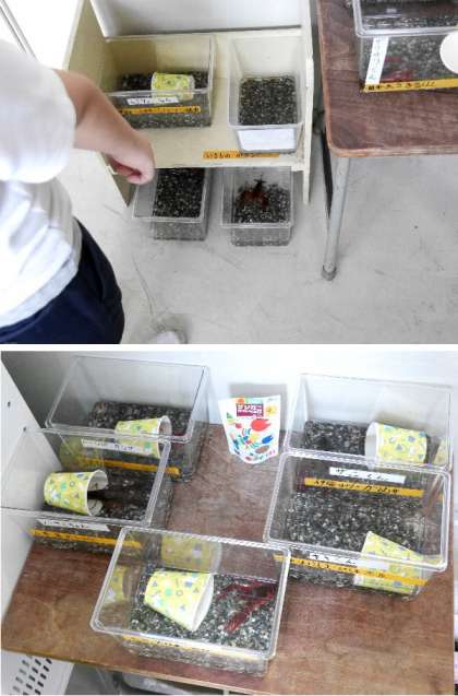 2年生の生活では、「ザリガニ」の飼育観察を行います。ずっと延期になっていましたが、ようやく2年生の各教室にザリガニが来ました。班に分かれて、それぞれのザリガニを飼育観察をします。