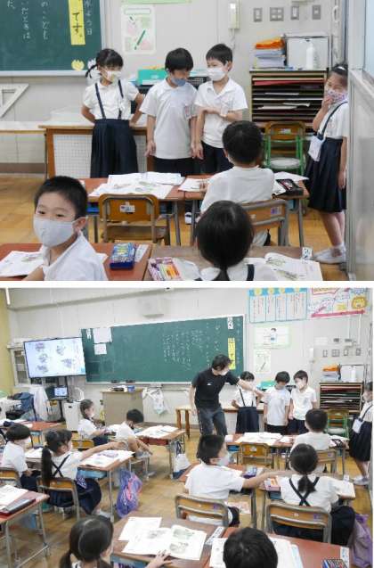 1年生の道徳では、有名な羊飼いのお話しを読んで考えました。うそばかりついているとどうなったか、登場人物の役割をして考えました。