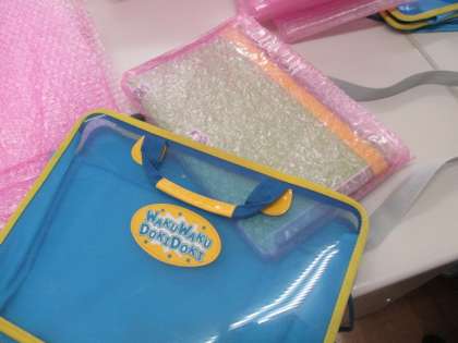大きめの「プチプチシート」を材料に一つ一つ手作りです。
