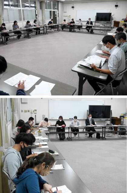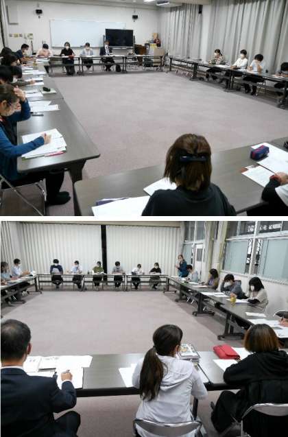 3年生での算数の研究授業のあと、講師先生をまじえて授業検討会をおこないました。先生がたの授業力向上のために熱心に討議されました。