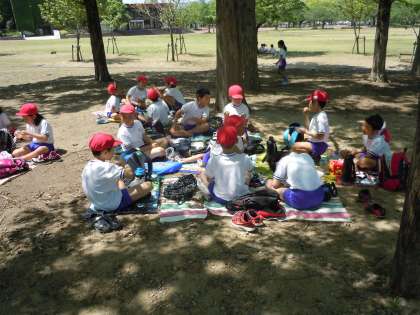 広い芝生で、お弁当を食べて、思い切り遊びました。