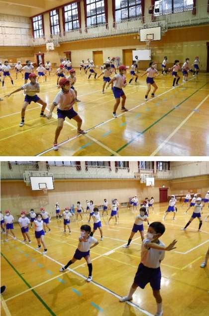 5年生が南中ソーランの練習をがんばっています。ポーズもきまってきましたよ。