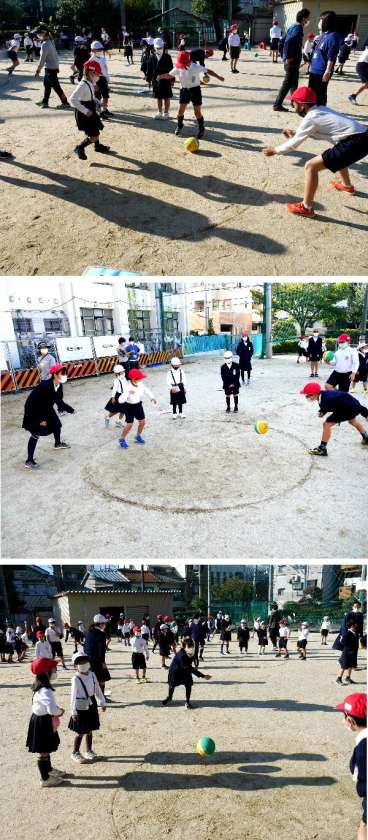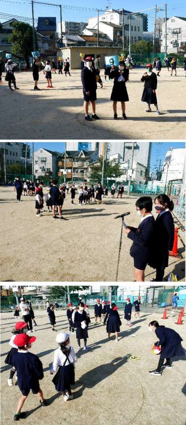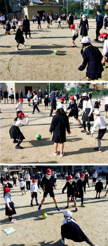 ようやく運動集会ができるようになりました。1年と6年の縦割り班で集まって、ころがしドッヂをしました。6年生のおにいさん、おねえさんにやさしく教えてもらって、楽しく運動しました。