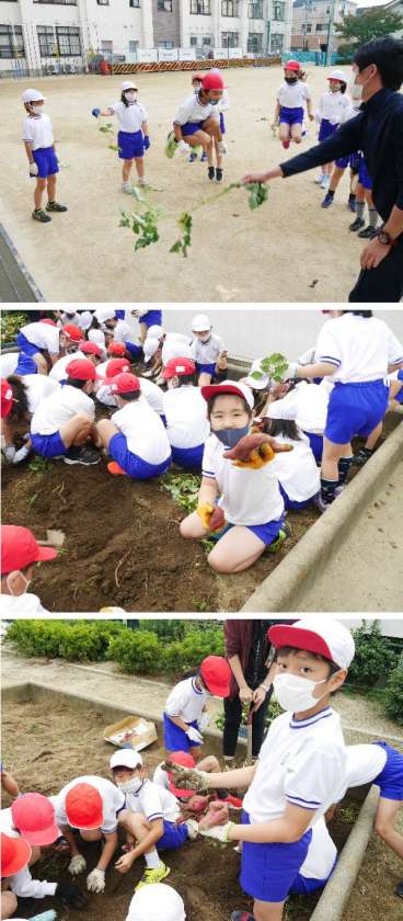 今日は2年生のさつまいもの収穫です。学習園でそだててきたサツマイモをほりだしました。たくさんのサツマイモが収穫できました。