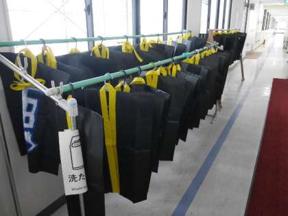 5年生で練習しているソーランは土曜授業でお披露目いたします。そのときに羽織るハッピの準備もできました。ハッピの背中には自分の名前の中の漢字一文字が書かれています。