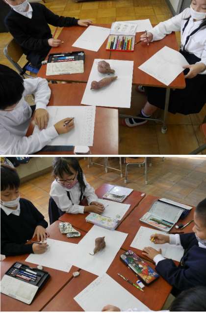 11月4日 2年!サツマイモを観察しよう 公開日 2021/11/04 更新日 2021/11/04 学校生活 2年生では、サツマイモの収穫をしました。そのサツマイモを観察して絵をかいています。いろんな形のサツマイモがあっておもしろいですね。 いいね(0)