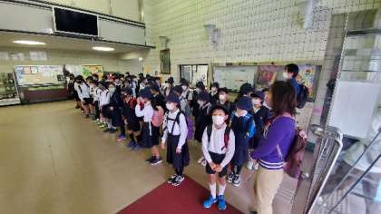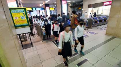 5年生が遠足で京都に出かけます。京阪京橋駅から電車に乗ります。
