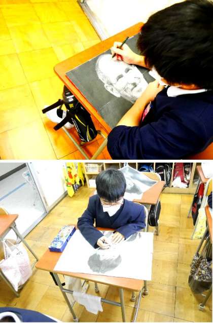 11月8日 6年図工!著名人の顔をリアルに描こう 公開日 2021/11/08 更新日 2021/11/08 学校生活 6年生の図工では、お気に入りの著名人の顔を写し取って、色の濃淡でリアルに仕上げていきます。 いいね(0)
