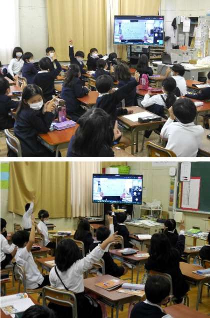 今日の児童集会は、オンラインで集会委員会からクイズがありました。各教室ではハンドサインで答えていました。