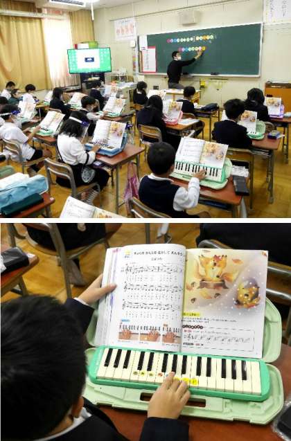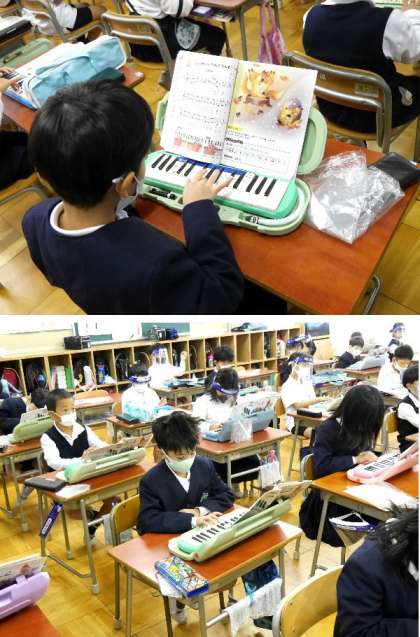 2年生が鍵盤ハーモニカで「ごんぎつね」を弾いています。使う鍵盤の数がどんどん増えてきて難しくなってきましたね。