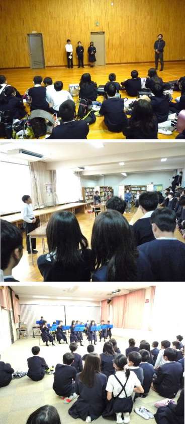 東都島小学校の進学校である桜宮中学校との小中交流会が、桜宮中学校で行われました。6年生が桜宮中学校まで行き、校内見学や中学校の生活について説明があり、部活動の見学をしました。