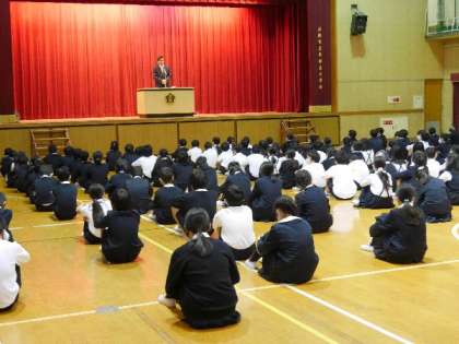 今日は、高学年の全校朝会を行いました。