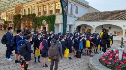 スペイン村での活動を終えて集合です。