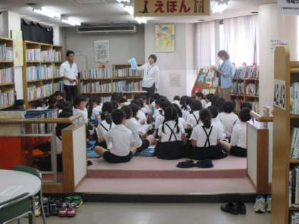 初めに、図書館の職員の方からお話と紙芝居をしていただきました。