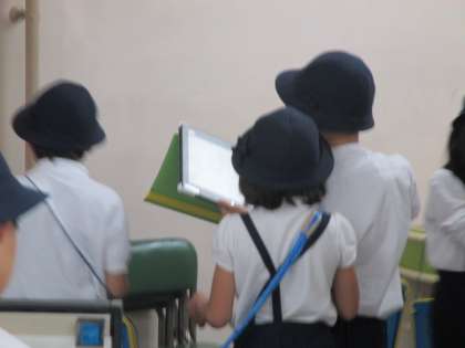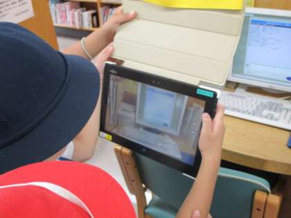撮った写真はタブレットから取り出すことなく、そのまま教室の電子黒板に接続して授業活用できるのでたいへん便利です。