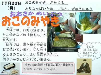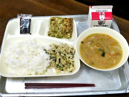 今日の献立は、おこのみやき、豚汁、とりなっぱ炒め、ごはん、牛乳でした。今日もごはんのすすむメニューでした。おいしかったですね。
