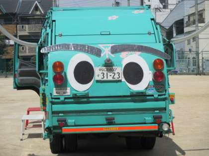 この学習のために、今日のパッカー車は顔仕様!