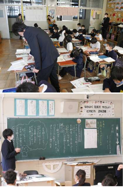 2年生の国語で研究授業を行いました。かえるくんたちのお話しです。