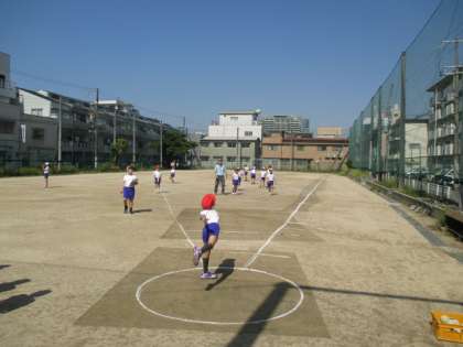 ボールを思いっきり遠くへ投げたり、長い直線を全速力で走ったりして、自分の力を出し切ります。