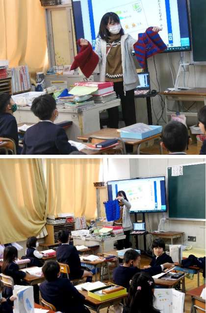 そんなお話しです。その毛糸のチョッキを、本校の先生が実際に編んだものを持ってきてくれました。物語の内容がイメージしやすいですね。
